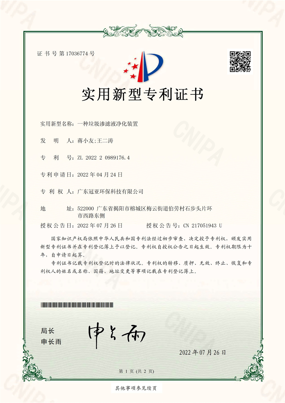 一種垃圾滲濾液凈化裝置